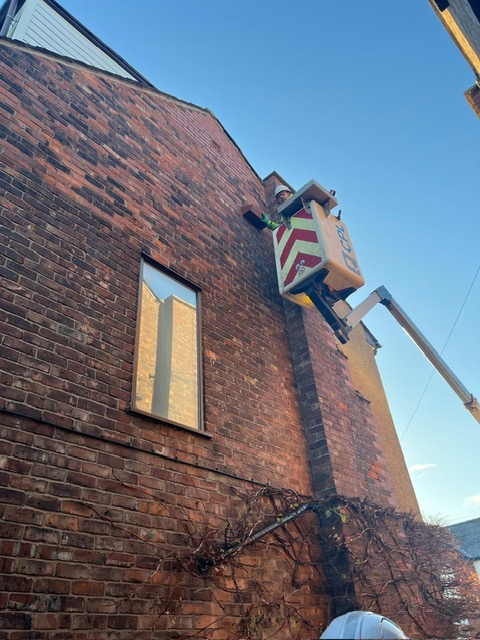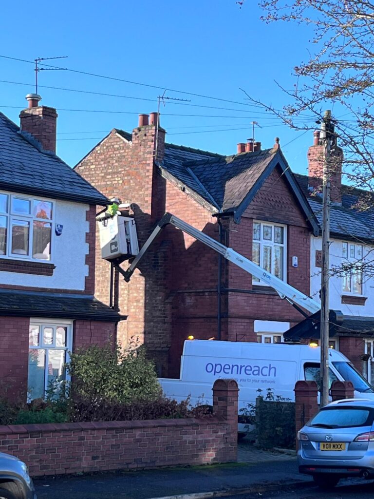Meanwhile BT Openreach teams up with the RSPB in a new Business Conservation Partnership. They contact Andy to volunteer their cherry pickers and operators for putting up swift boxes. Hooray! It was just what the Atwood Rd residents needed. You can see in the pictures how useful the cherry pickers were. Other neighbours have since ordered boxes and callers, managing to install them themselves.